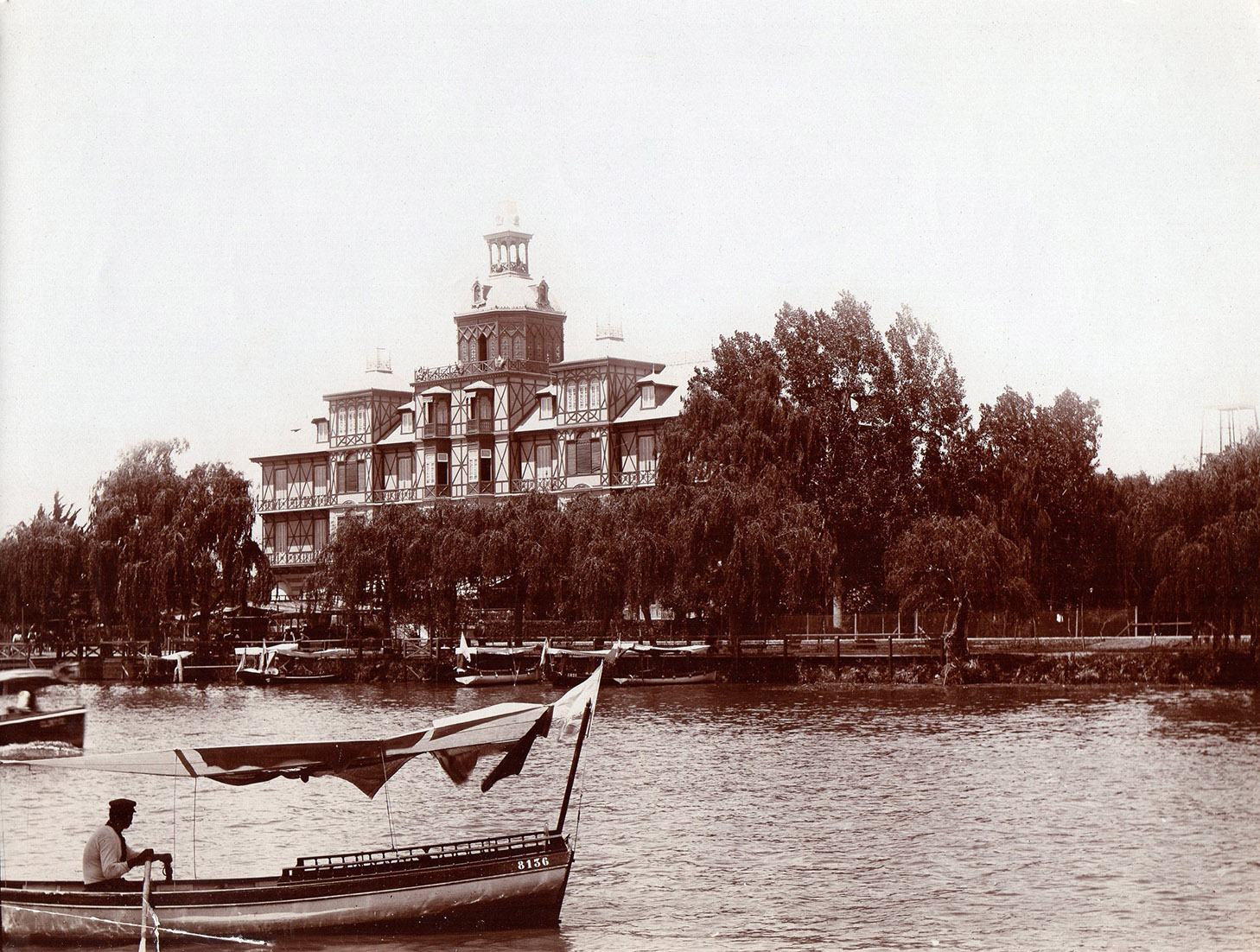 Tigre Hotel. Circa 1890. Gelatina de plata, 15,9 x 21,8 cm. Inaugurado en 1890, en 1939 cerró sus puertas y al otro año, un misterioso incendio lo devoró y finalmente fue demolido. Ver más.