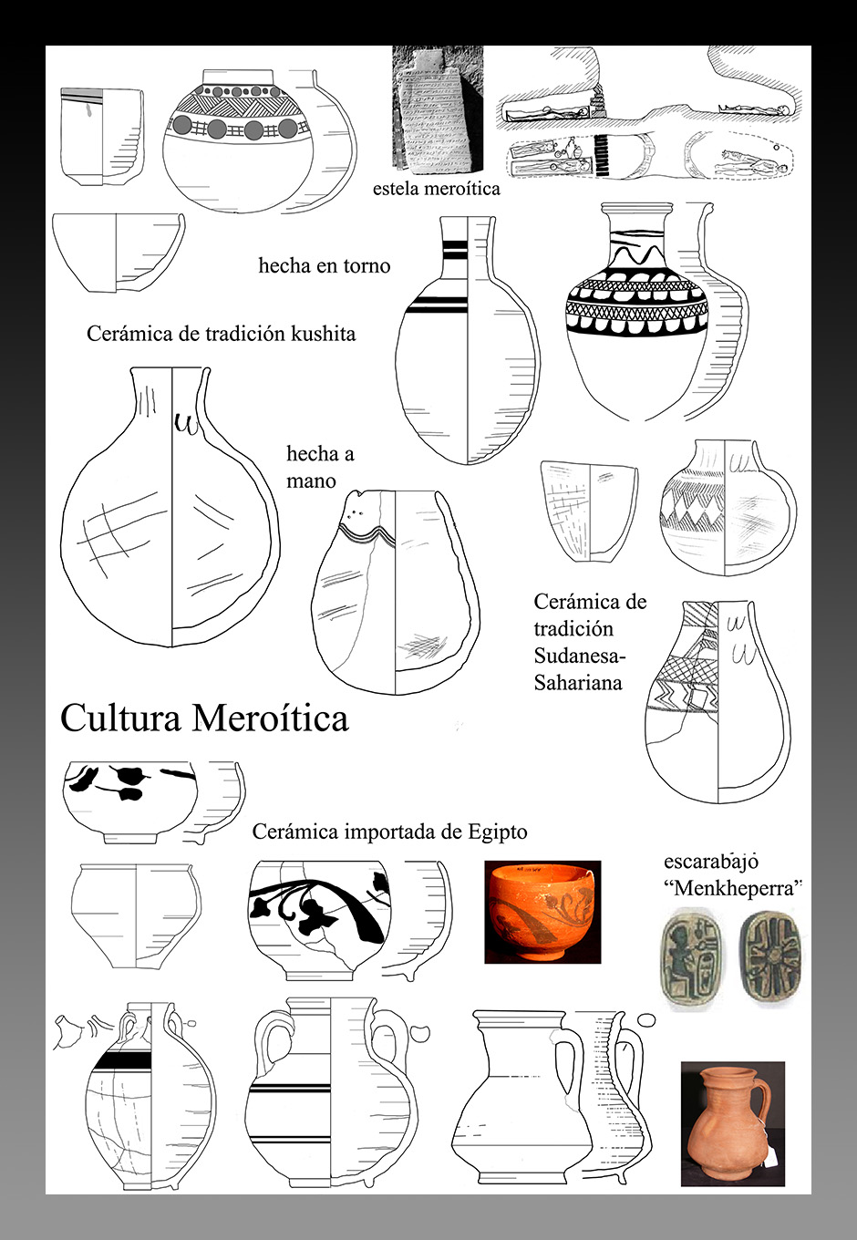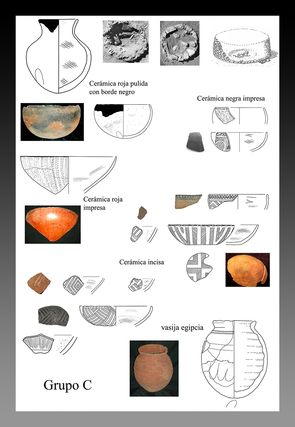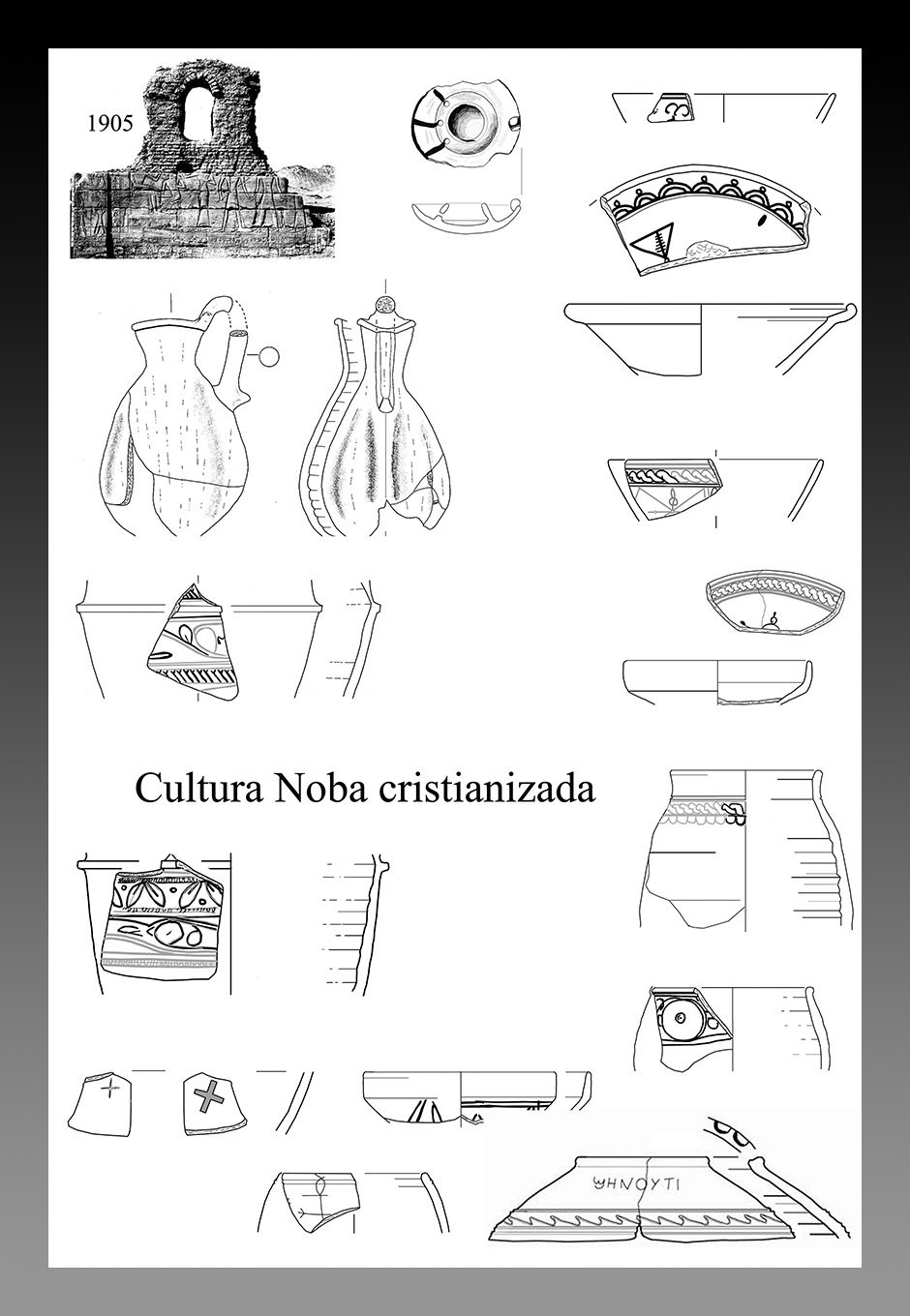 Fig. 4. Grupo X. Rasgos que identifican la cerámica recuperada de esta cultura noba, así también denominada. Reflejan tres tradiciones culturales.