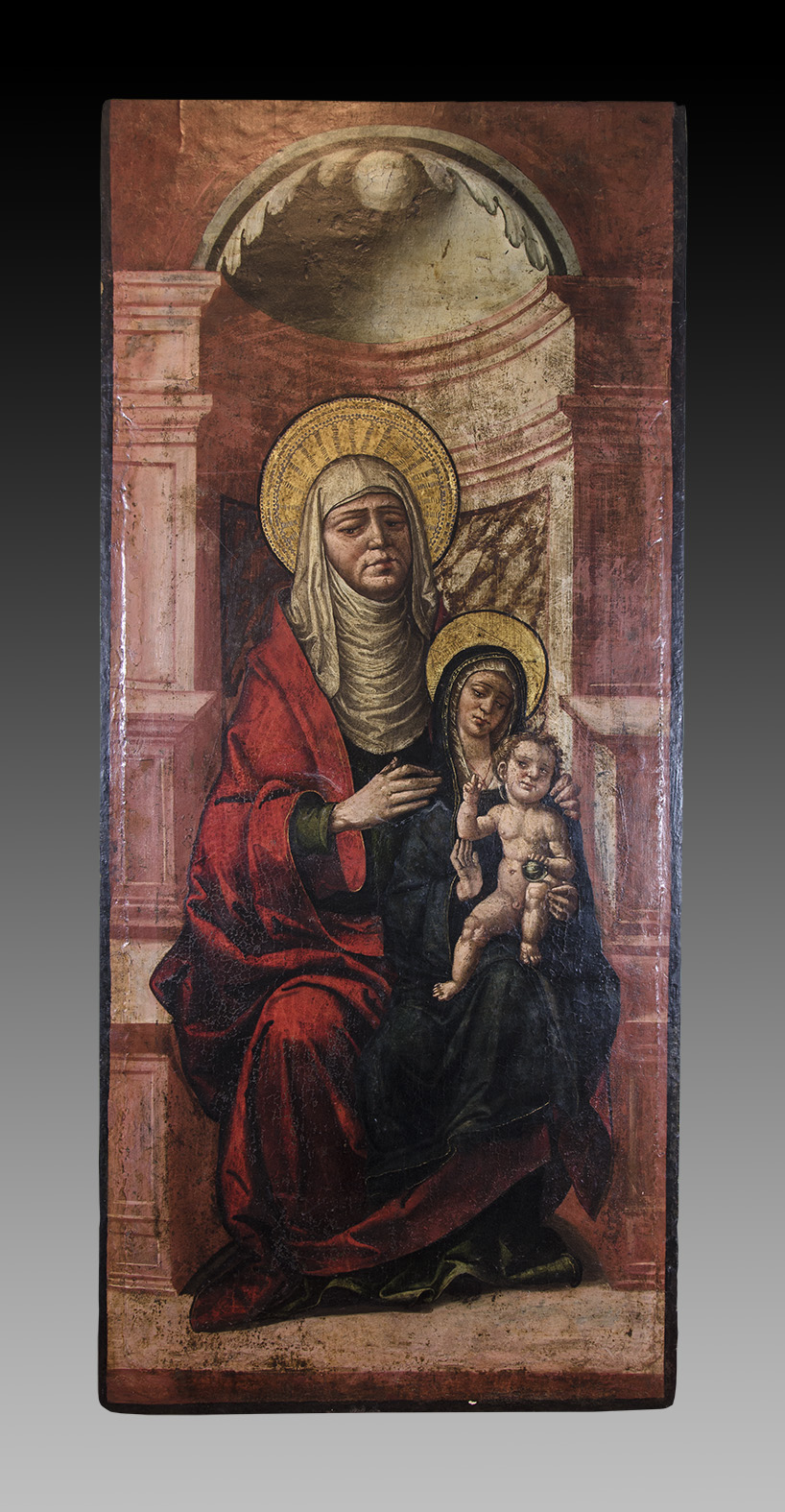 Santa Ana Triple. Óleo y temple sobre tabla, 145 x 65 cm. Obra adquirida en su viaje de 1947 a España. Colección Héctor Schenone. Fotografía: Nicolás Vega.