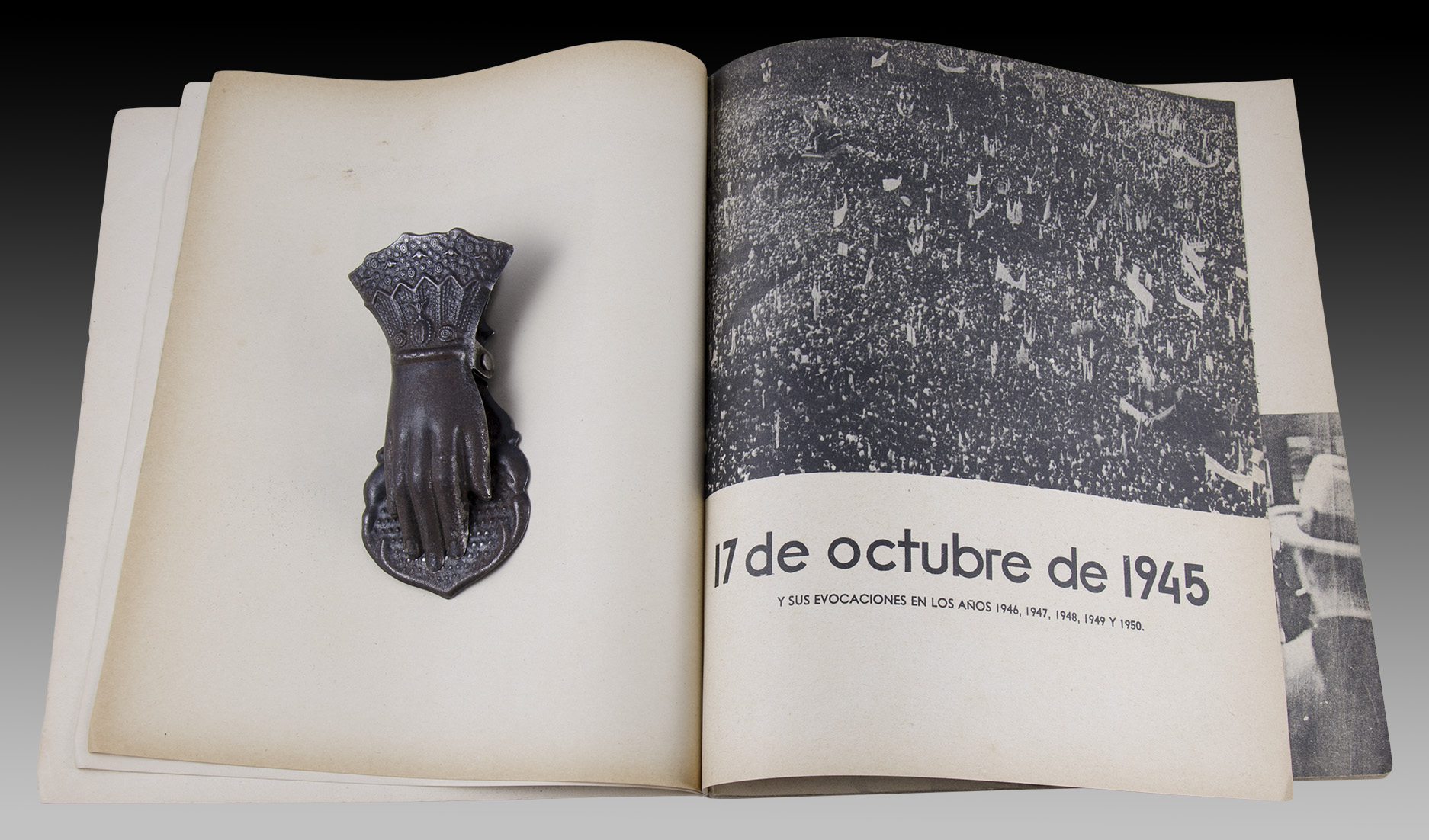 En las dos primeras páginas, los retratos de Perón y Evita. La obra reúne una vívida crónica de aquel 17 de octubre de 1945 y sus evocaciones anuales hasta 1950 con los discursos de Evita -dirigidos a “mis queridos descamisados”- y del líder del partido, Juan Domingo Perón, incluidas las Veinte verdades del justicialismo peronista.