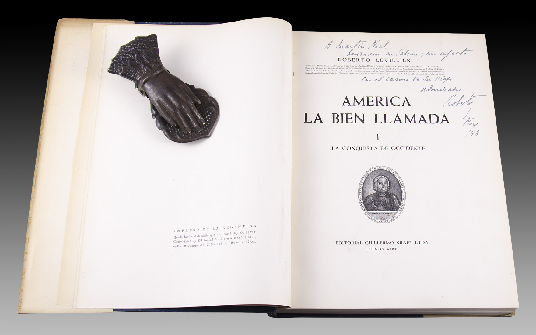 Gran ejemplar dedicado por el autor: “A Martín Noel, hermano en letras y en afecto, con el cariño de su viejo admirador. Obra en 2 tomos con sobrecubiertas, en 4°, ejemplares en buen estado, muy ilustrado. Tomo I: XXXII, 293 pp., 2 h., + 3 h. Tomo II: 400 pp., + 2 h. con numerosas ilustraciones. Edición numerada.