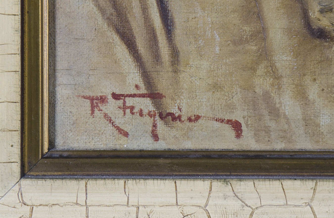 Raffaele Frigerio (1875-1948) fue un pintor italiano activo entre finales del siglo XIX y la primera mitad del siglo XX. Se especializó en retratos y escenas de género, con particular atención a figuras populares —ancianos, pescadores y campesinos— abordadas desde una sensibilidad naturalista. Su obra se inscribe en la tradición figurativa italiana, destacándose por el estudio expresivo del rostro y la dignidad de lo cotidiano.