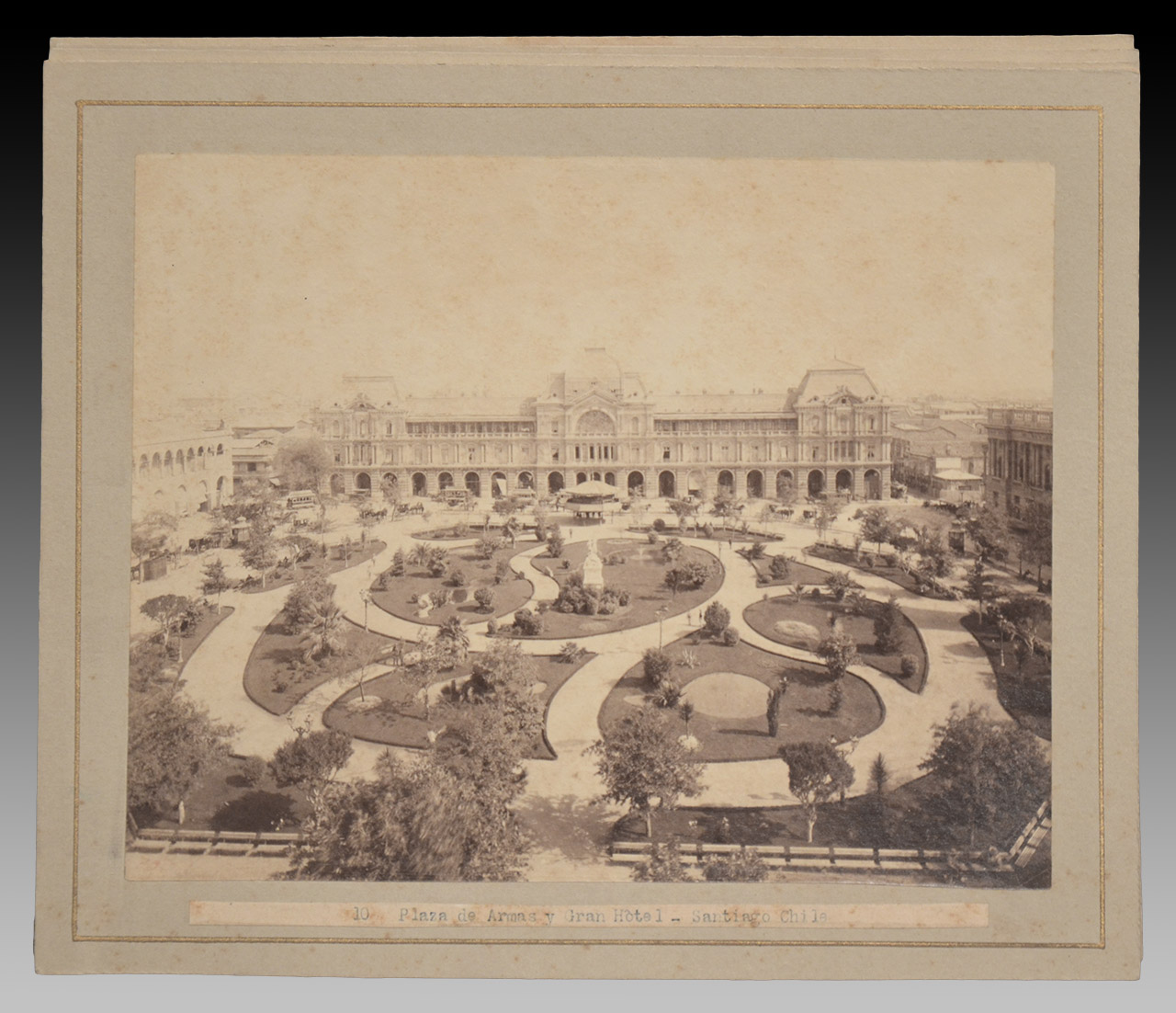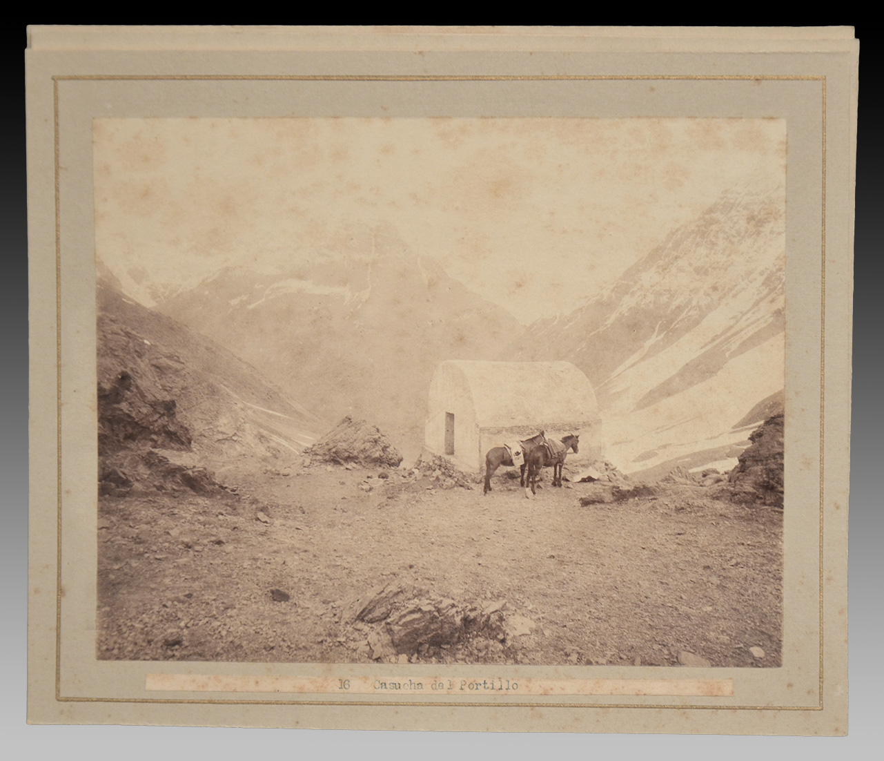 Las vistas del cruce de la cordillera de los Andes realizadas durante el siglo XIX son realmente escasas, de allí el valor iconográfico de estos registros de alta montaña. Se puede apreciar la línea férrea que unía Mendoza con Punta de Vacas (estación inaugurada en 1893), y los clásicos refugios de techo abovedado, escalonados a través del cruce de la cordillera para protección de los viajeros. Por último, esta colección nos muestra una vista panorámica de altura sobre el centro histórico de Santiago de Chile, a través de su Plaza de Armas, de geométricos jardines, con coches de alquiler y el tránsito de los tranvías a caballo.