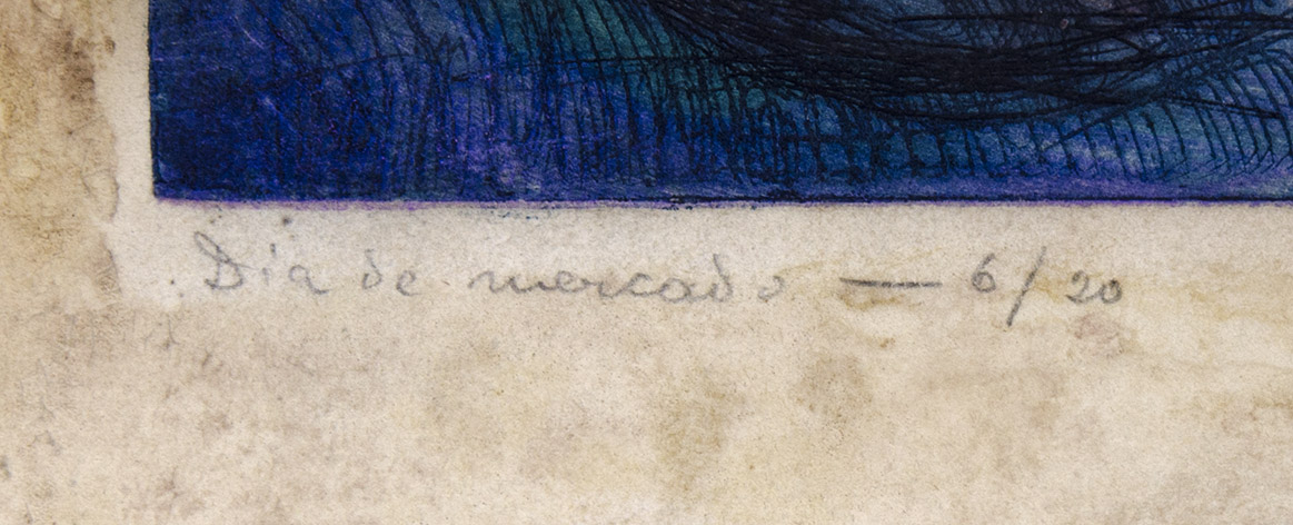Aguafuerte sobre papel: Bajo la escena, se observa el título, el número de ejemplar y la firma del autor con lápiz grafito. Medidas: 50 x 50 cm. Ejemplar sexto de una tirada de 20. En buen estado.