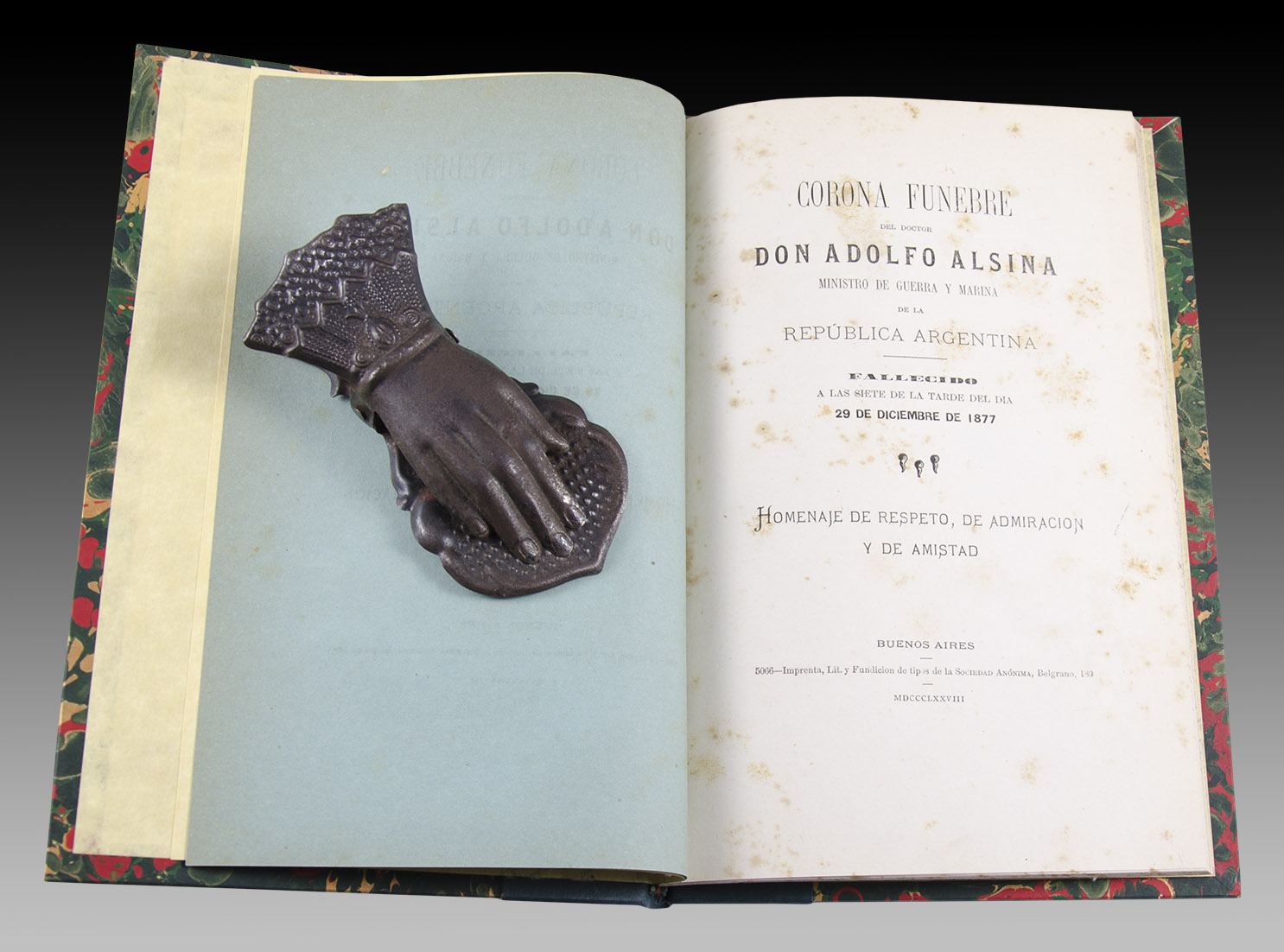 Corona Fúnebre // del Doctor // Don Adolfo Alsina // Ministro de Guerra y Marina // de la // República Argentina. // Fallecido // a las siete de la tarde del día // 29 de Diciembre de 1877. // Homenaje de respeto, de admiración // y de amistad. Buenos Aires. Imprenta y Lit. y Fundición de Tipos de la Sociedad Anónima. MDCCCLXXVIII. (1878).