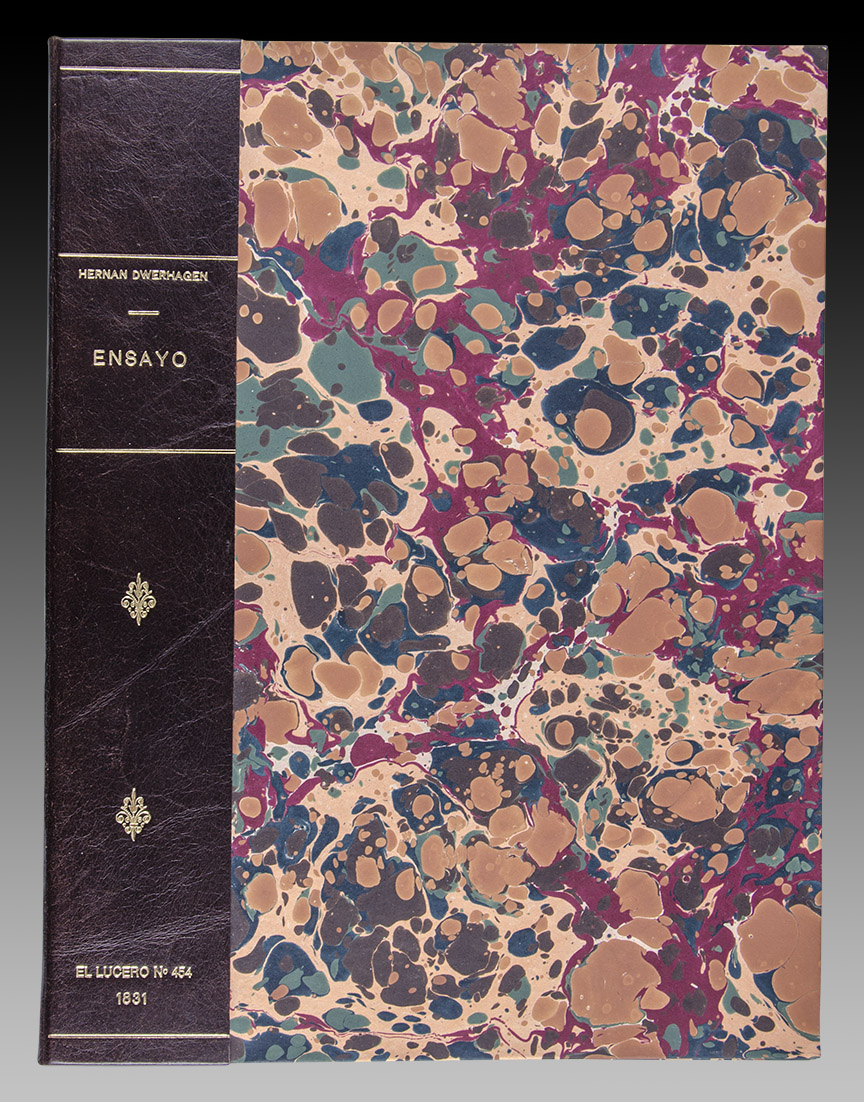 Muy raro. En 8° mayor (19,7 x 14,4 cm), 16 pp. Encuadernación rústica original. Ejemplar en buen estado con un texto manuscrito de época en la Portada, sin el mapa, acompañado por la entrega del periódico El Lucero -diario político, literario y mercantil- impreso en Buenos Aires el viernes 8 de abril de 1831 con un estudio -extenso y crítico- sobre este folleto.