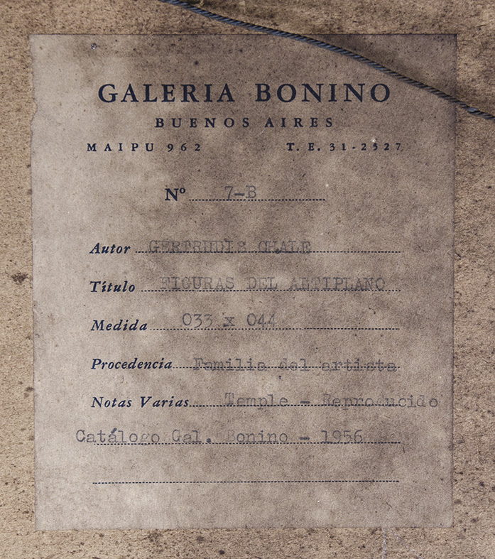 1. En Gertrudis Chale. Una pintora en el mundo andino. Años 1934 - 1954. Buenos Aires, Ed. Buenos Aires Latin american art, 2009, p. 47.