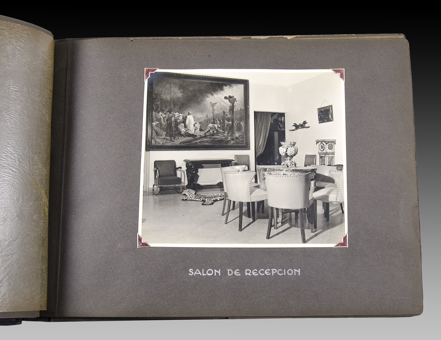 Muy raro. Álbum en 4° oblongo con 38 fotografías (9 de 18 x 24 cm y 29, de 9 x 11,5 cm), copias vintage en gelatina de plata. El álbum, personalizado con los títulos en dorado, tiene sus tapas de cuero y es acordonado. Ejemplar en muy buena forma.