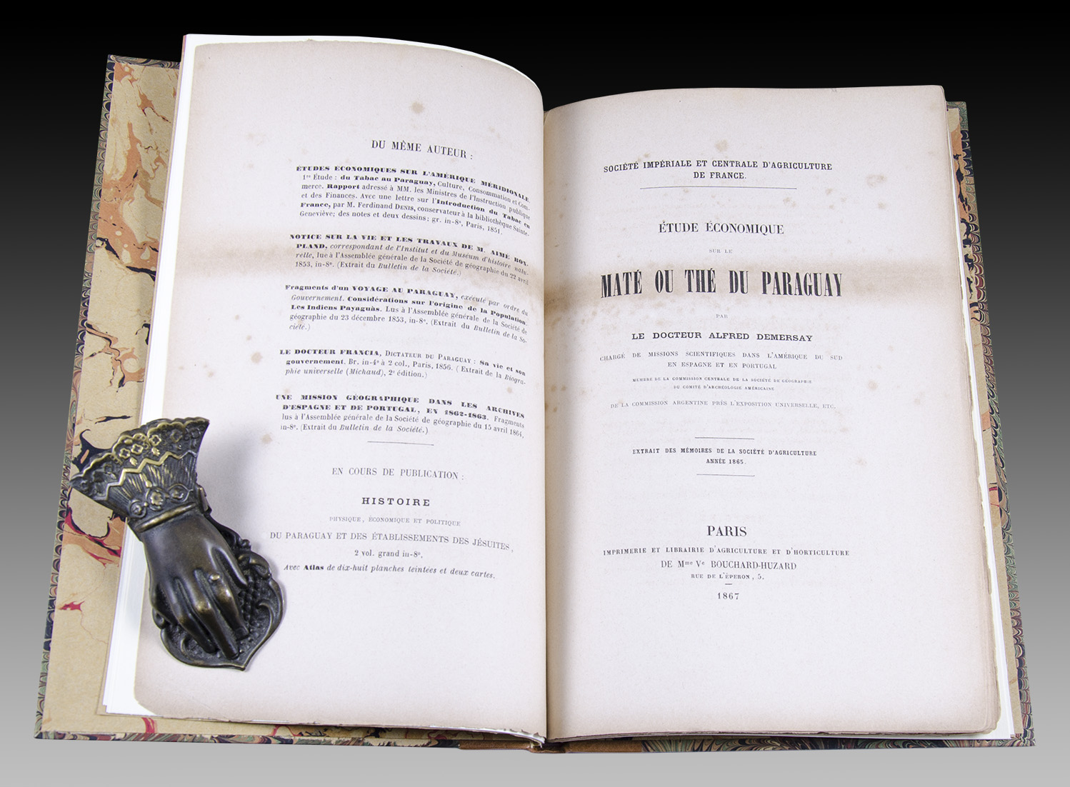 Étude Économique // sur le // Maté ou thé du Paraguay. Paris. Imprimerie et librairie d'Agriculture et D'Horticulture de Mme. Ve. Bouchard-Huzard. 1867.