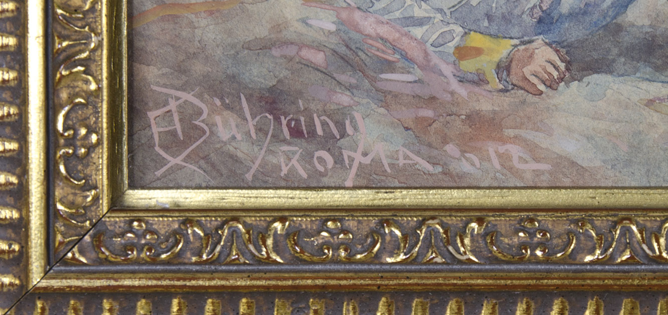 No hemos encontrado aún información de este pintor, E. Büring, apellido del centro-este europeo, que actuó en Roma en 1912. Es probable que se encuentre vinculado a Enrico Büring, impresor de Messina, activo a fines del siglo XIX.