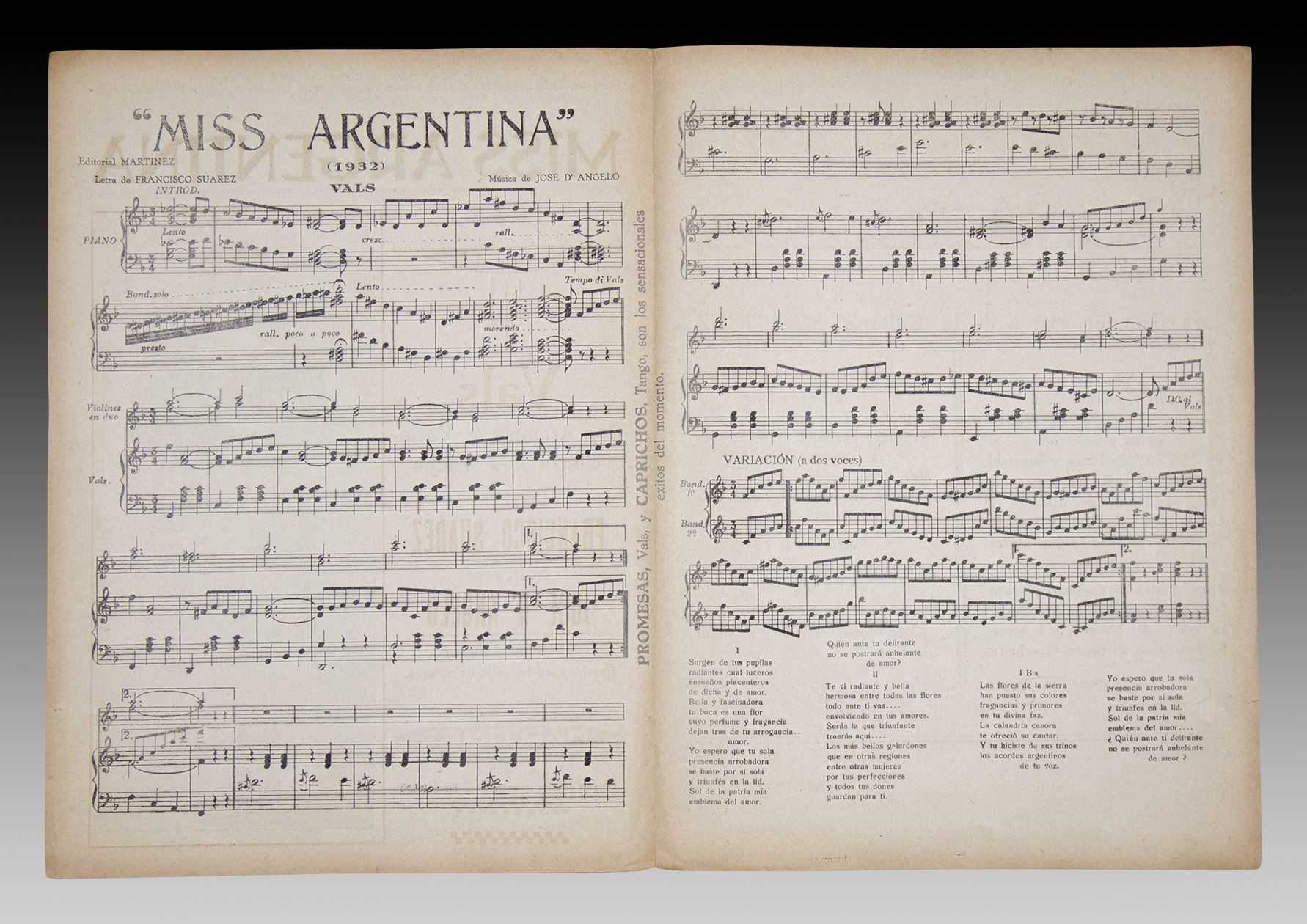 Sorprendente presencia de la mujer argentina en un vals argentino y en el obsequio publicitario de la línea de chocolates turca, Lion Cikolatasi. Ofrecemos la partitura -publicada por la editorial musical Martínez- y una postal impresa en Turquía con su imagen.