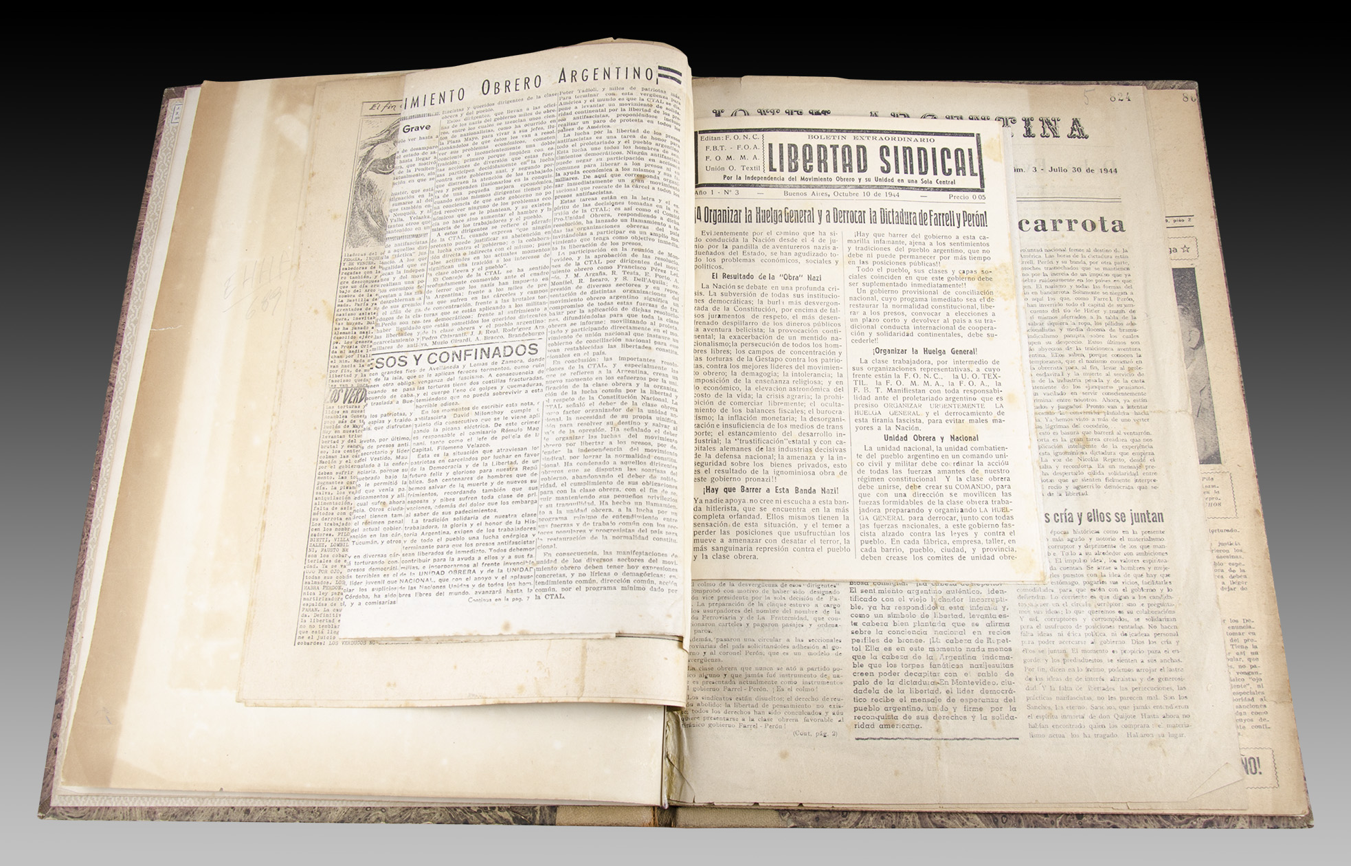 Excepcional conjunto de periódicos, en su mayoría de circulación clandestina, que se oponían abiertamente al gobierno emanado del golpe militar del 4 de junio de 1943 que derrocó al presidente Ramón S. Castillo. El nuevo gobierno fue presidido por Ramírez siendo Farrell ministro de Guerra y Juan Domingo Perón titular de la novedosa Secretaría de Trabajo y Previsión. Iniciaba así Perón su carrera política coronada por la victoria en las elecciones presidenciales del 24 de febrero de 1946. He aquí un notable conjunto de periódicos opuestos a la gestión de esta dictadura militar, para los opositores, de claro espíritu fascista. Todos los ejemplares en buena forma, encuadernados en un volumen. Con ex libris de Federico Vogelius.