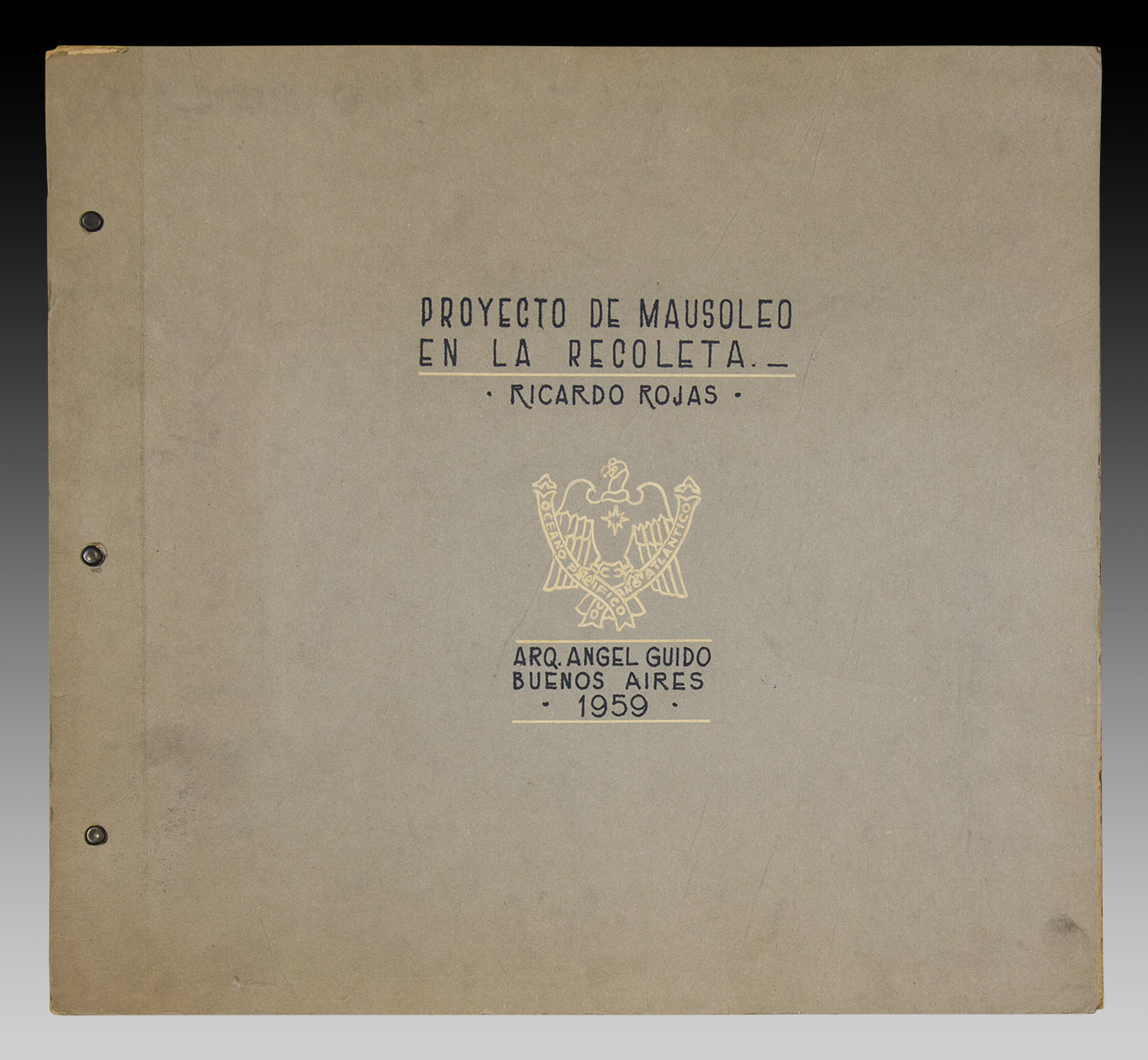 El proyecto posee una tapa con un escudo con un cóndor que lleva una estrella en el pecho, y una cinta que une “Océano Pacífico” con “Océano Atlántico”, como emblema americanista. Le continúa una portada con el diseño final del mausoleo, en perspectiva y colores, y tres páginas con los diversos frentes y cortes. Los cuatro lados del mausoleo representarían cruces, poseería dos figuras, cuatro lámparas votivas y un ángel alado con una corona de laureles al frente, y las inscripciones “La Patria vive de sus muertos gloriosos” y “Ricardo Rojas Maestro de los argentinos".