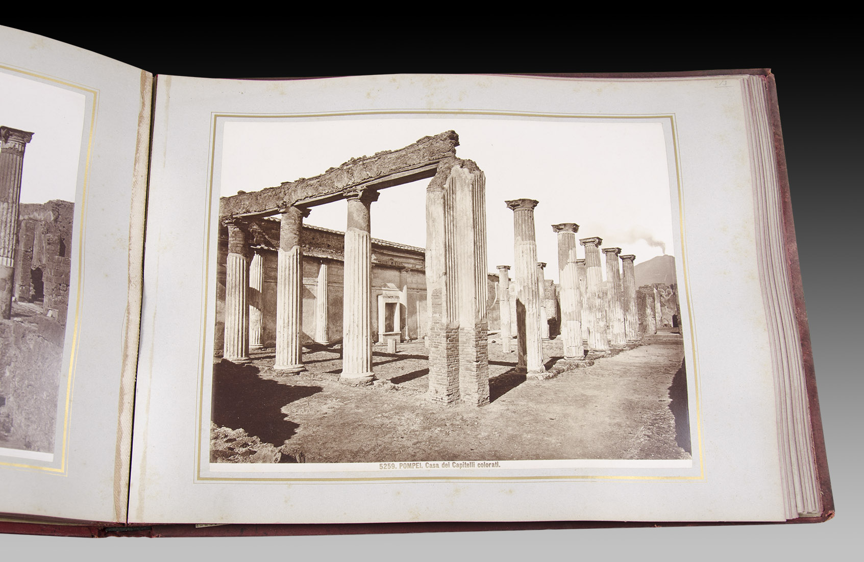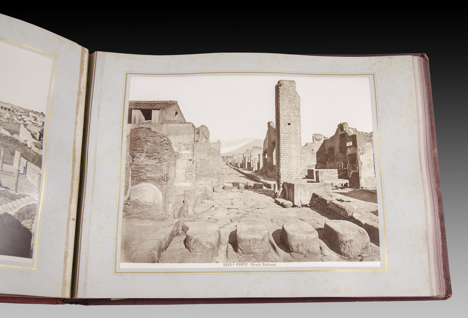 El álbum que aquí ofrecemos es de especial importancia y por dos motivos; en primer lugar por la elección del proceso de fotolitografía que deriva en una calidad de imagen superior y, el segundo, por el generoso tamaño de sus copias que permiten visualizar hasta los pequeños detalles urbanos. Hoy podemos viajar a la Pompeya del siglo XIX a través de estas maravillosas imágenes que, con sus 50 grandes ventanas, rescatan la gran civilización del Imperio Romano.