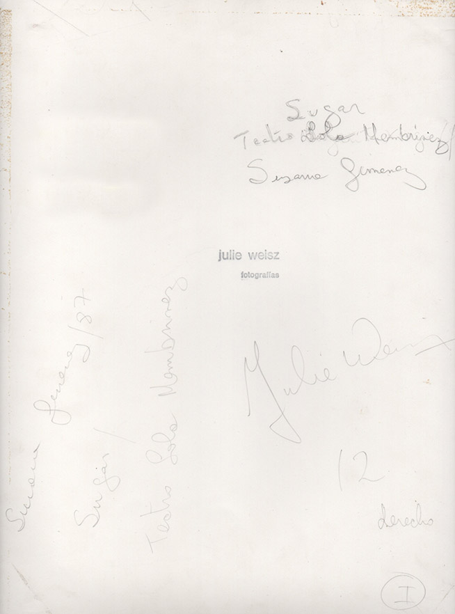Sucede así su fortuito inicio en la fotografía en 1961. Al tiempo se haría cargo definitivamente del estudio que era de su padre, Fotos Doris, en la calle Paraná, frente a la Plaza Vicente López, donde desarrolló la fotografía comercial hasta 1989. Con la misma determinación, el “destino” le marcó el camino del teatro. Casada con el director de teatro Roberto López Pertierra, vivieron en la provincia de San Juan y de retorno en Buenos Aires, inauguraron una sala en la calle Florida. Finalmente, en 1981 fue llamada a fotografiar el vestuario de Cipe Lincovsky para La cortina de abalorios de Ricardo Monti. La obra se presentaba en Teatro Abierto, el mítico ciclo que irrumpió en los últimos tres años de la dictadura, y terminados los registros del vestuario, fue invitada a presenciar la función. “Me entusiasmé como loca y terminé fotografiando los ciclos 81, 82 y 83” escribe en su libro Julie Weisz. Fotografías de Teatro Abierto.
