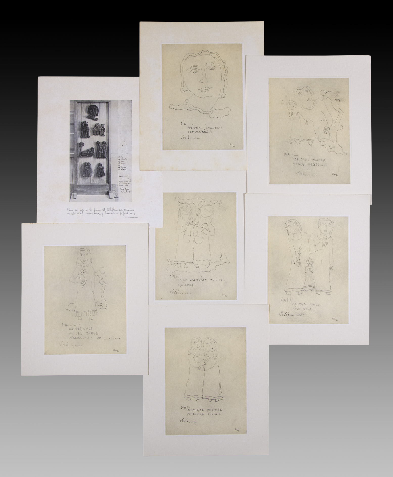 La obra nace de su viaje por los países del altiplano Sud Americano, “un año entero renovándome y buscando un perfecto razonamiento para continuar”. Después de aquella experiencia, Badii viajó a Europa y a su regreso, llevó al bronce tres de aquellas obras inspiradas en aquel itinerario sudamericano. Pero disconforme, continuó su búsqueda hasta que “nació el bajo relieve denominado “UN DÍA…” Fue la obra de rotura académica, dirá el autor. “En el año 1952 realicé estos dibujos mirando dicho relieve, era un grato recuerdo a lo que ahora los reúno en esta carpeta”. (1)
