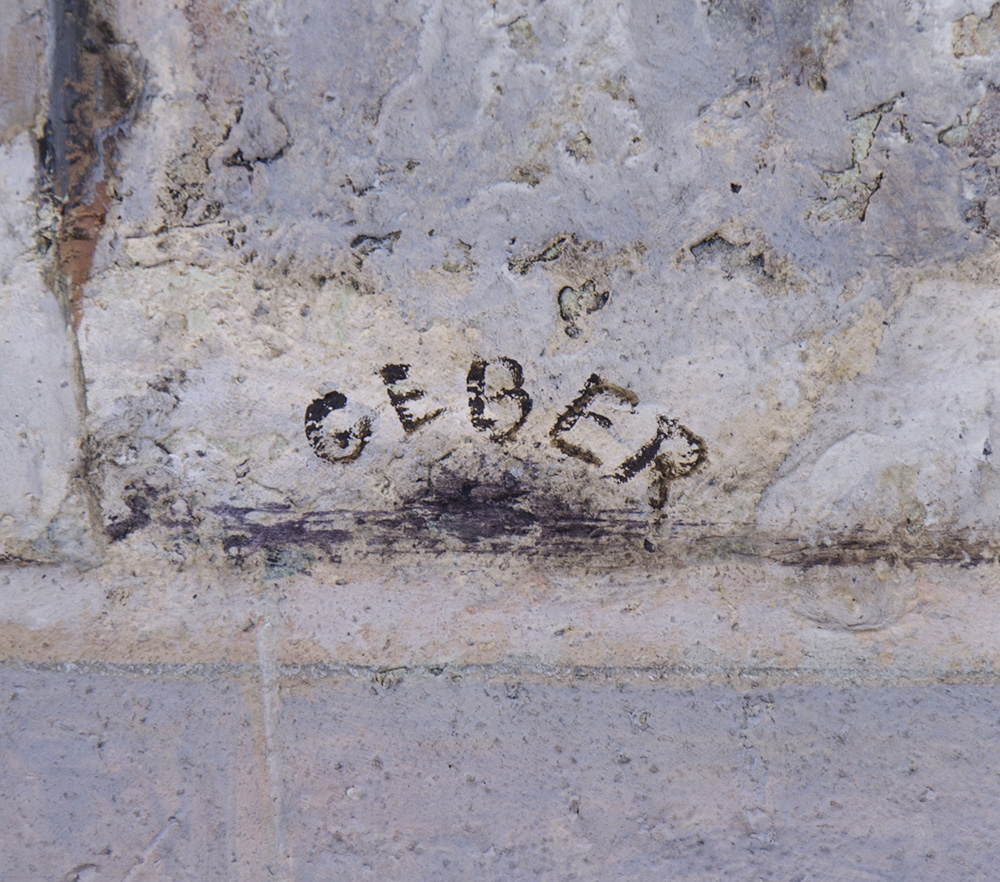 Una puerta y la pared y vereda que la rodean son testigos mudos del paso del tiempo en nuestra ciudad. La vieja puerta de madera cuenta con un improvisado cierre con una cadena. Detrás, por el hueco de la pequeña abertura ausente, se observa una chapa de zinc acanalada y oxidada. El revoque perdido desnuda la pared de ladrillos. Con magistral técnica Geber registra las diversas texturas de estos paisajes de arquitecturas ruinosas de los barrios de San Telmo y La Boca, desprovisto de personajes. Son éstas sus composiciones predilectas y en la presente obra, en un tamaño más generoso que las medidas habituales de sus creaciones pictóricas.